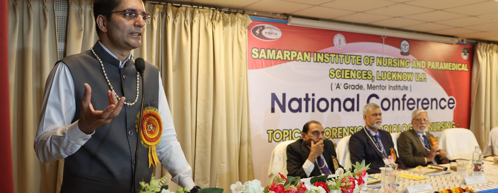 The one-day National Conference on Forensic Cardiology, organized by Samarpan Institute of Nursing & Paramedical Sciences, Lucknow, commenced with the auspicious sound of the conch and the lighting of the ceremonial lamp.